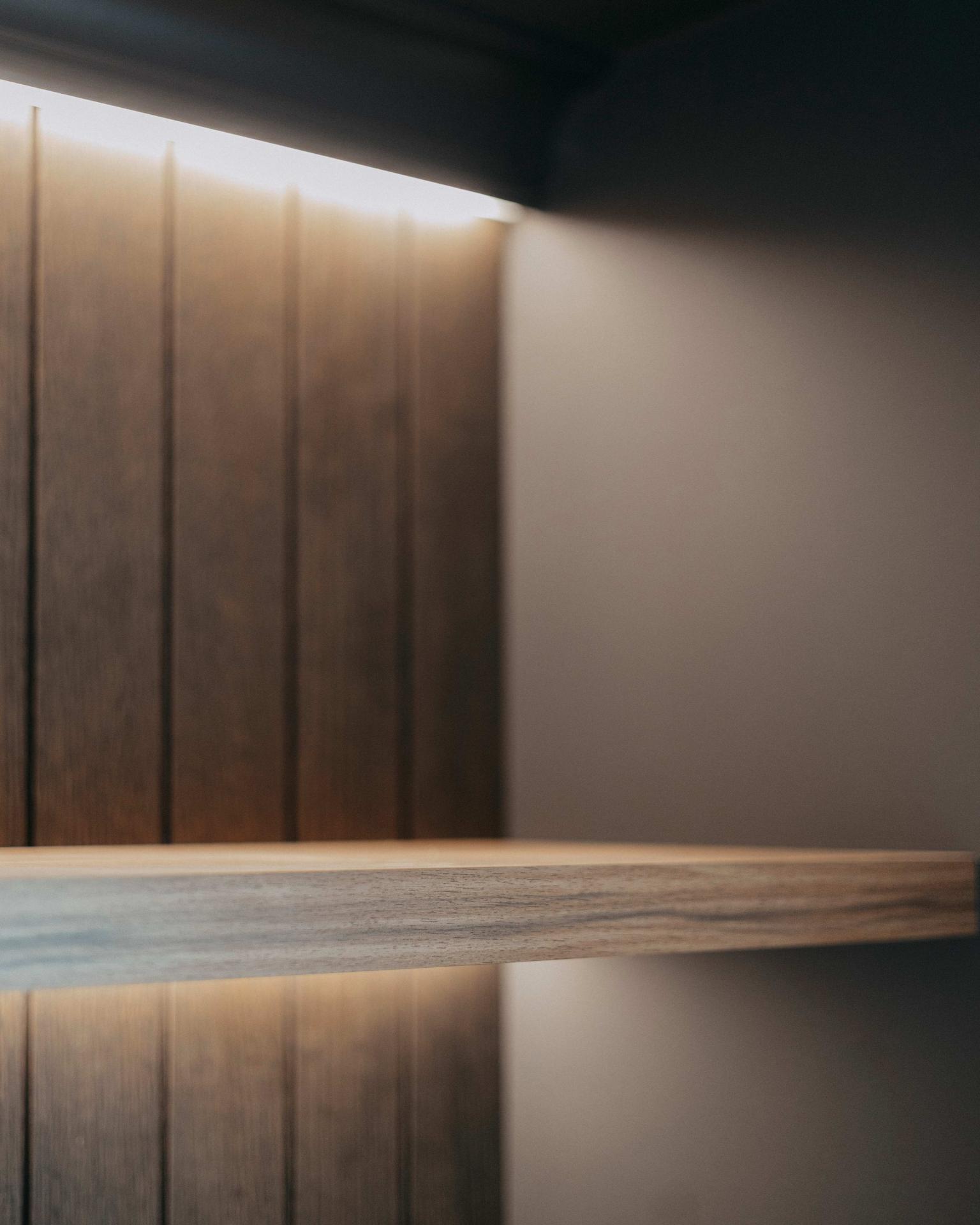 Il était nécessaire d’ajouter de l’éclairage pour mettre en valeur chaque objet posé sur les tablettes en Polyrey.