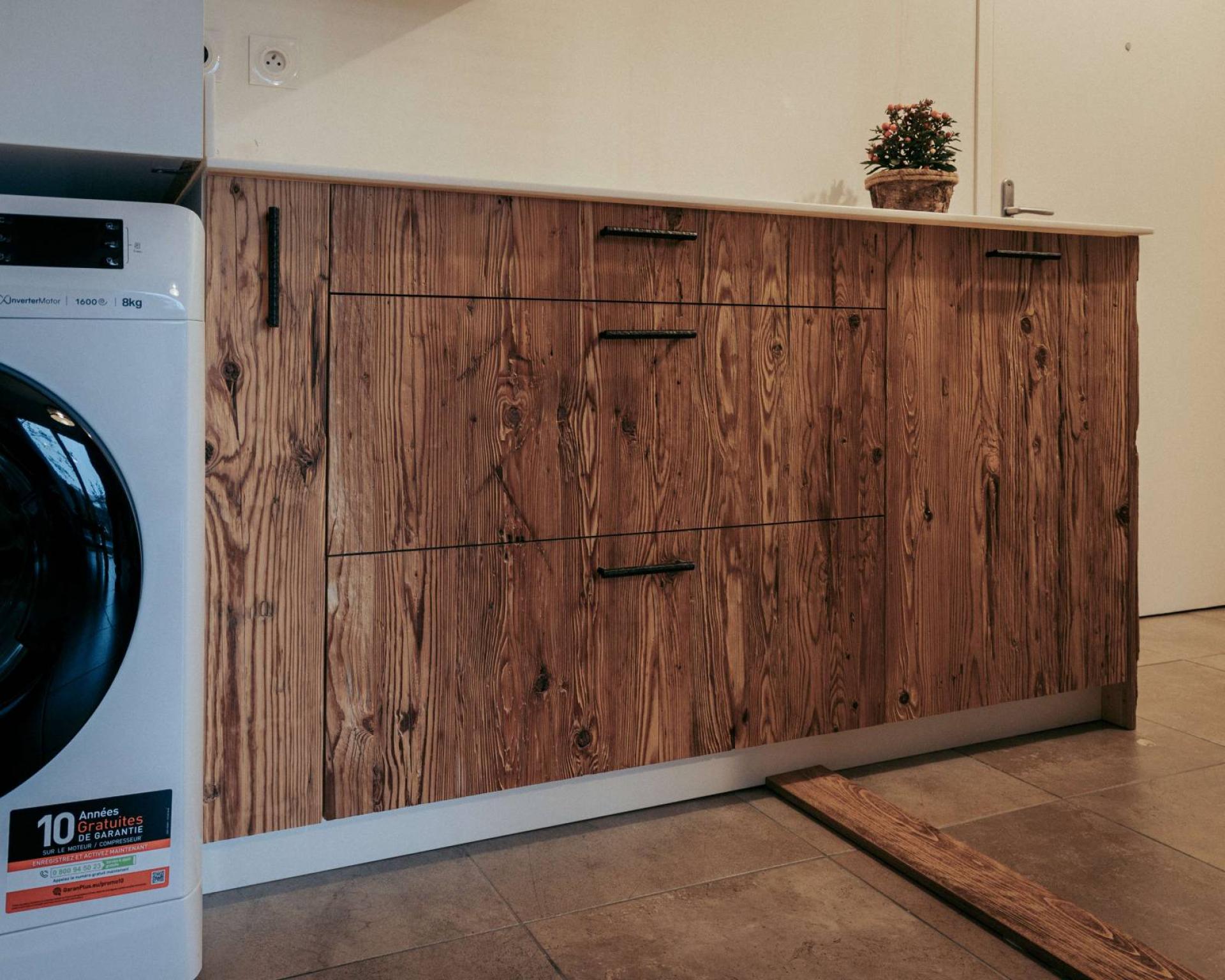 Vous souhaitez faire réaliser sur mesure une cuisine moderne avec façade en vieux bois ? By House propose son approche minimaliste, pour tout projet de création de cuisine ouverte sur le salon à Lyon et dans la région Rhône-Alpes.