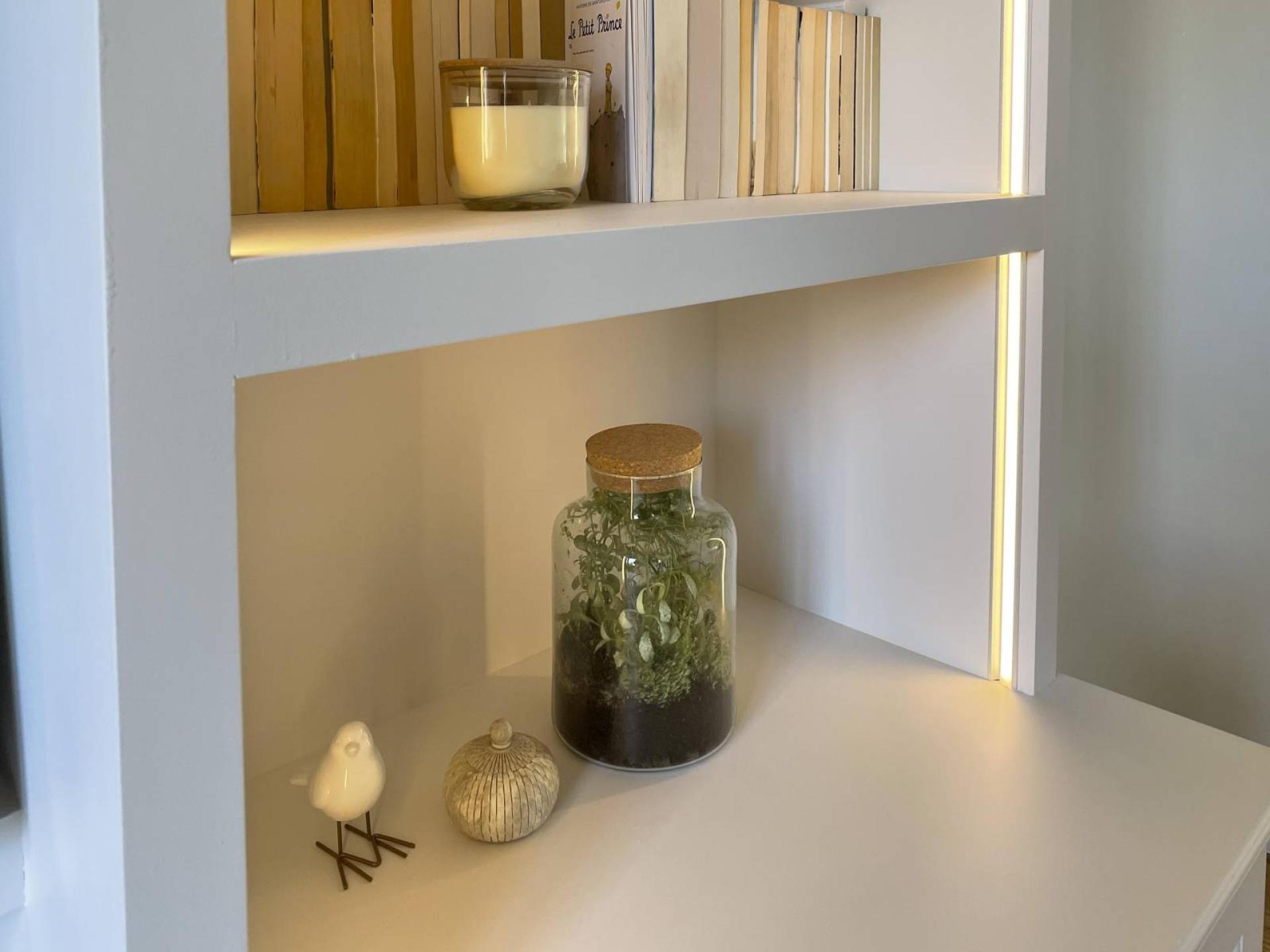 Enfin pour sublimer cela, un éclairage a été installé pour mettre en valeur divers objet et livre