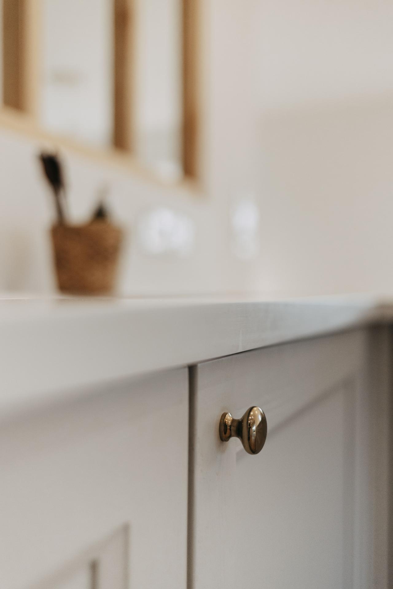 - Façades en frêne brossé laqué porcelaine, pour une finition lumineuse et douce,